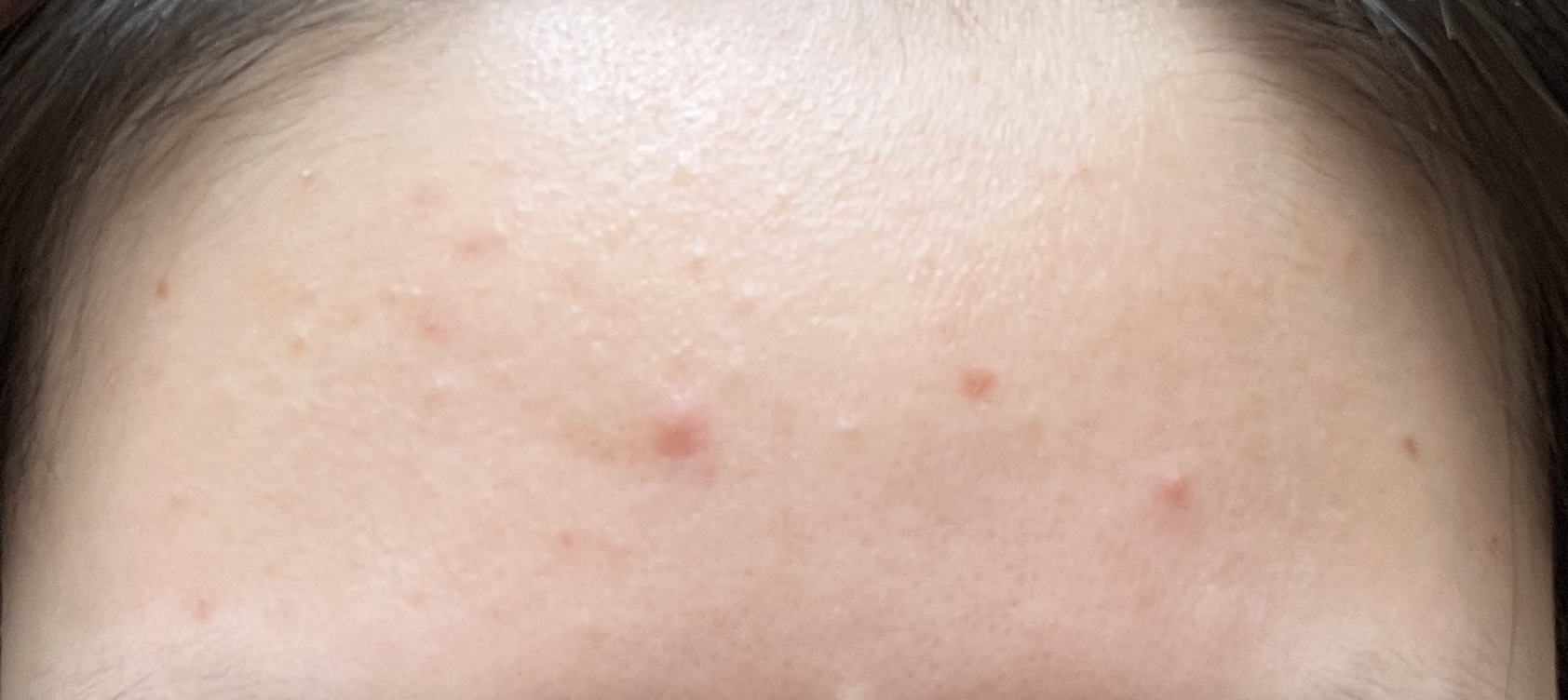 그러면서 특히 이마에 화농성 여드름, 좁쌀 여드름이 끊이지 않고 있습니다.